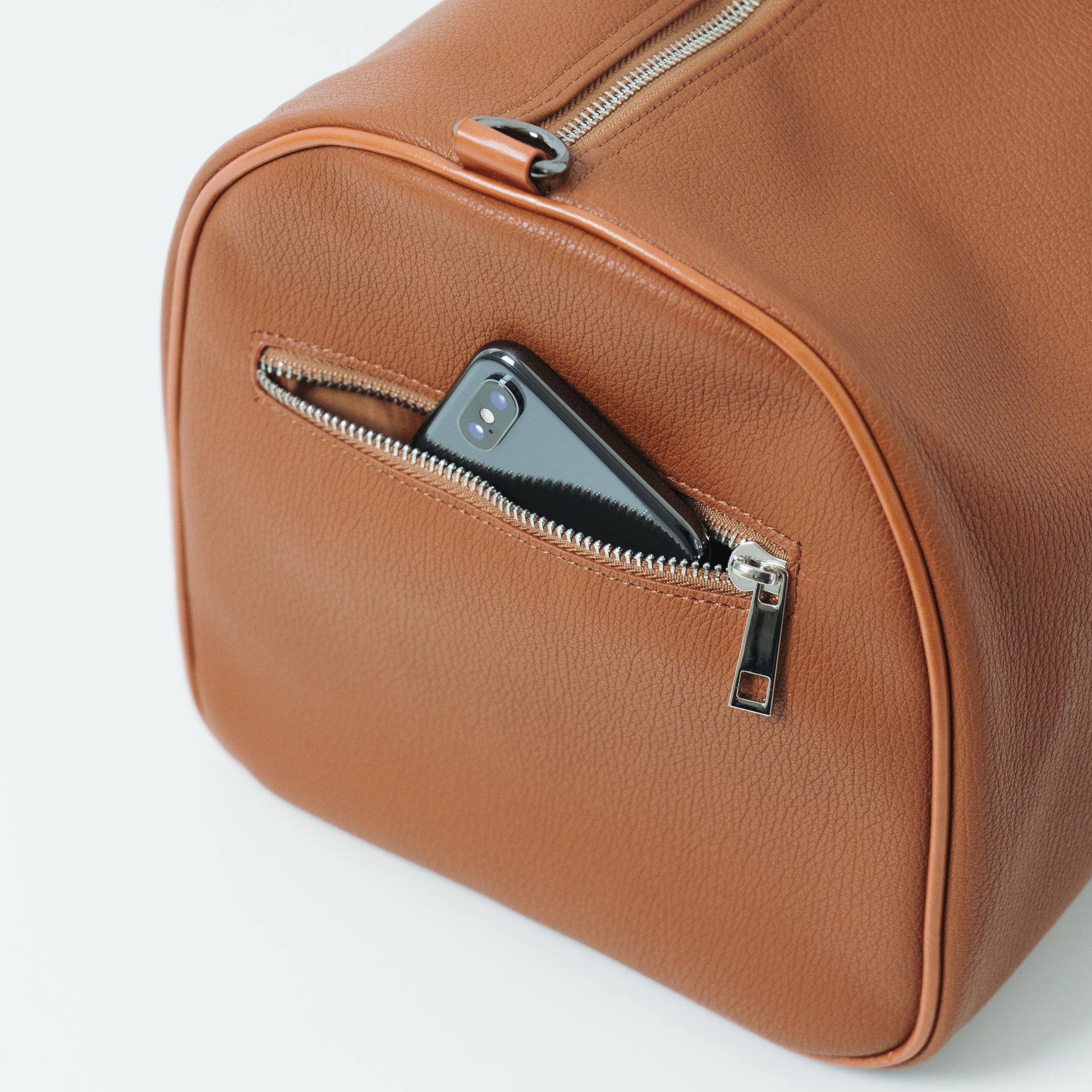 Designed to be minimal and understated, we've made a bag perfect for everyday use. It has an outer zip pocket, a grab handle, three inside pockets, and a leather shoulder strap.