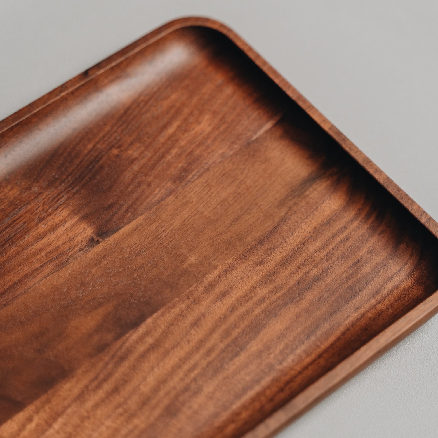 Each tray is carved from a solid piece of walnut timber or birchwood (black tray), so the grain on each tray will be unique.